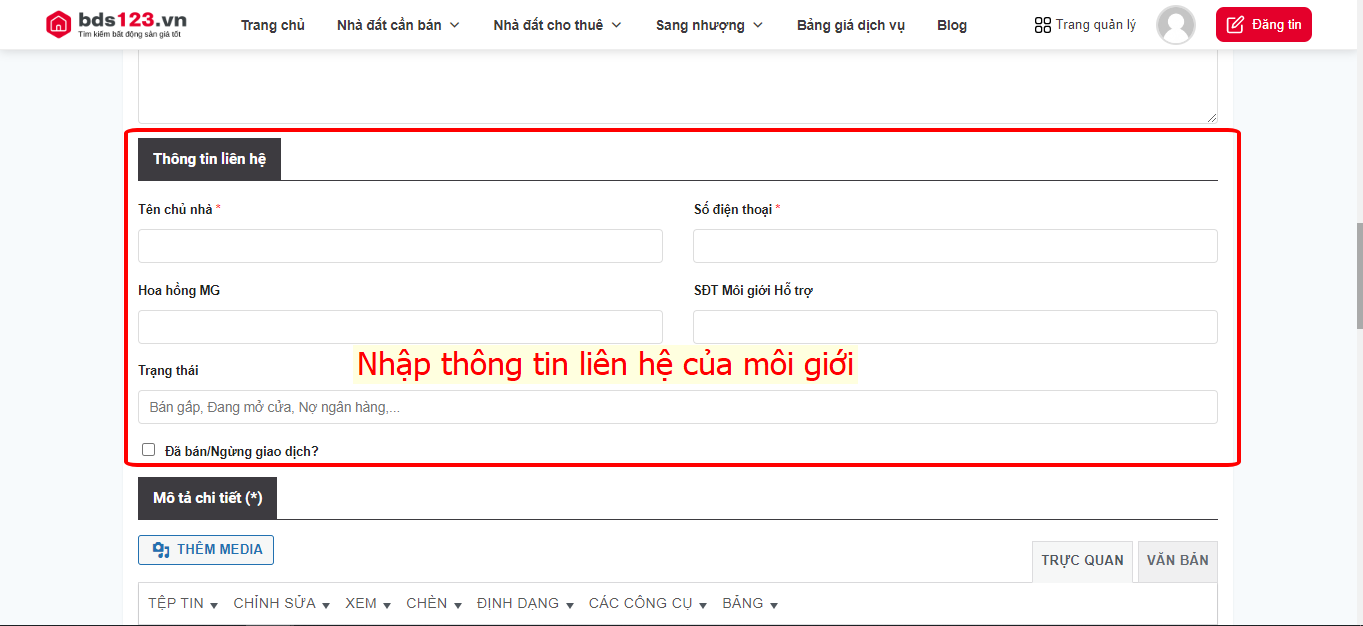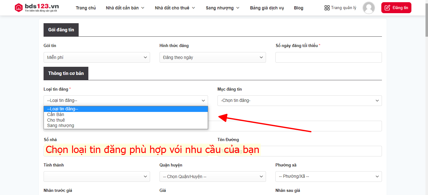 Chào bạn, sau đây là hướng dẫn đăng tin bán hoặc cho thuê trên website bds123.vn.